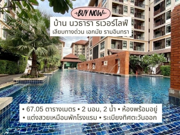 ขายคอนโดสวย บ้านนวธารา รีเวอร์ไลฟ์ สภาพเนี้ยบ 2 นอน 2 นำ้ เชื่อมต่อถนนประดิษฐ์มนูธรรม เลี้ยบด่วนเอกมัย รามอินทรา และประเสริฐมนูกิจ เกษตร-นวมินทร์