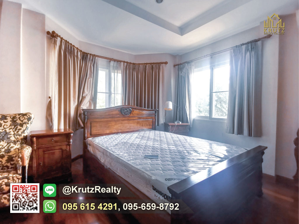ตัวบ้านชั้นล่างปูพื้นด้วยกระเบื้องแผ่นใหญ่ ภายในประกอบด้วยโซนรับแขกที่กว้างขวาง พร้อมชุดโซฟารับแขกหนังแท้ตัวใหญ่ นั่งสบาย และโซนรับประทานอาหาร มีโต๊ะทานอาหารที่นั่งทานอาหารกันได้แบบพร้อมหน้า มีโซนครัวในบ้านและนอกบ้านรวมกับโซนซักล้าง มีห้องน้ำใหญ่ และห้องเก็บของข้างบันได ตัวบันไดเป็นไม้แท้อย่างดี บนชั้นที่ 2 ปูพื้นด้วยไม้ปาร์เก้สวยงาม มีโซนอเนกประสงค์ที่สามารถปรับเป็นห้องอ่านหนังสือ ห้องทำงาน ห้องนั่งเล่น ห้องเรียนพิเศษ หรือห้องพระได้ ในห้องนอนใหญ่มีพื้นที่กว้างขวางมีหน้าต่างหลายบานเพื่อรับแสงรับลม พร้อมห้องน้ำในตัวที่มีระเบียงและห้องอาบน้ำ ห้องนอนเล็ก 2 ห้องมีห้องน้ำร่วมกันเปิดได้ 2 ทาง ทุกห้องมีเฟอร์นิเจอร์ไม้อย่างดีพร้อมที่นอนใหม่ทั้งหมด นอกตัวบ้านมีห้องอเนกประสงค์อีก 1 ห้อง สำหรับปรับเป็นห้องนอนแขก ห้องทำงาน ห้องแม่บ้าน หรือห้องซักรีดได้ มีที่จอดรถในร่ม 2 คัน และกลางแจ้งได้อีก 2 คัน